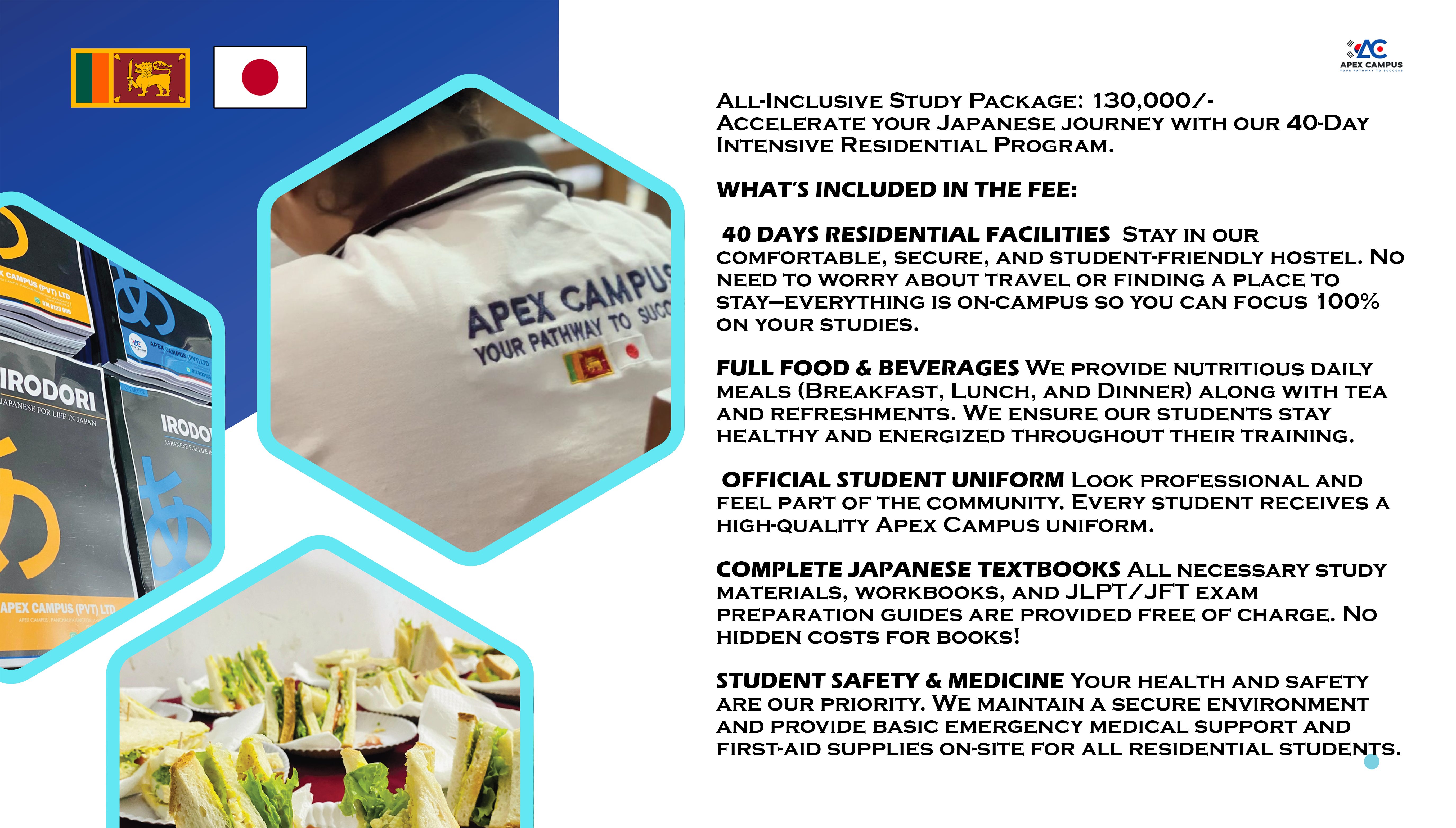 APEX Campus is a dedicated education institute in Sri Lanka, specializing in preparing students for study, work, and life in Japan.